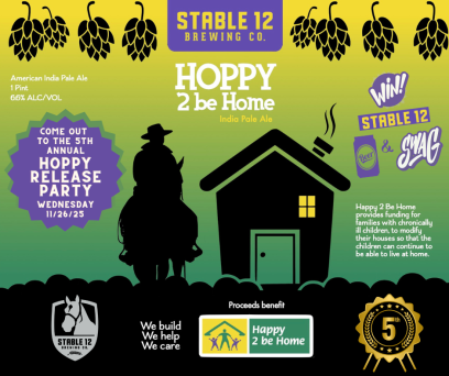 Hoppy 2 be Home was on its 4th year run! It's a one time brew India Pale Ale (IPA) that was sold only at Stable 12 in 4-packs and